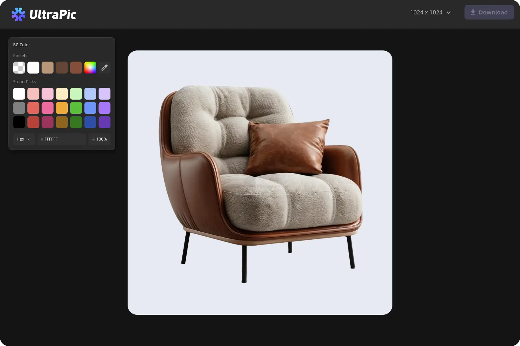 Apply lighting and detail enhancements to make your AI product photo look polished and listing-ready, then download it instantly.