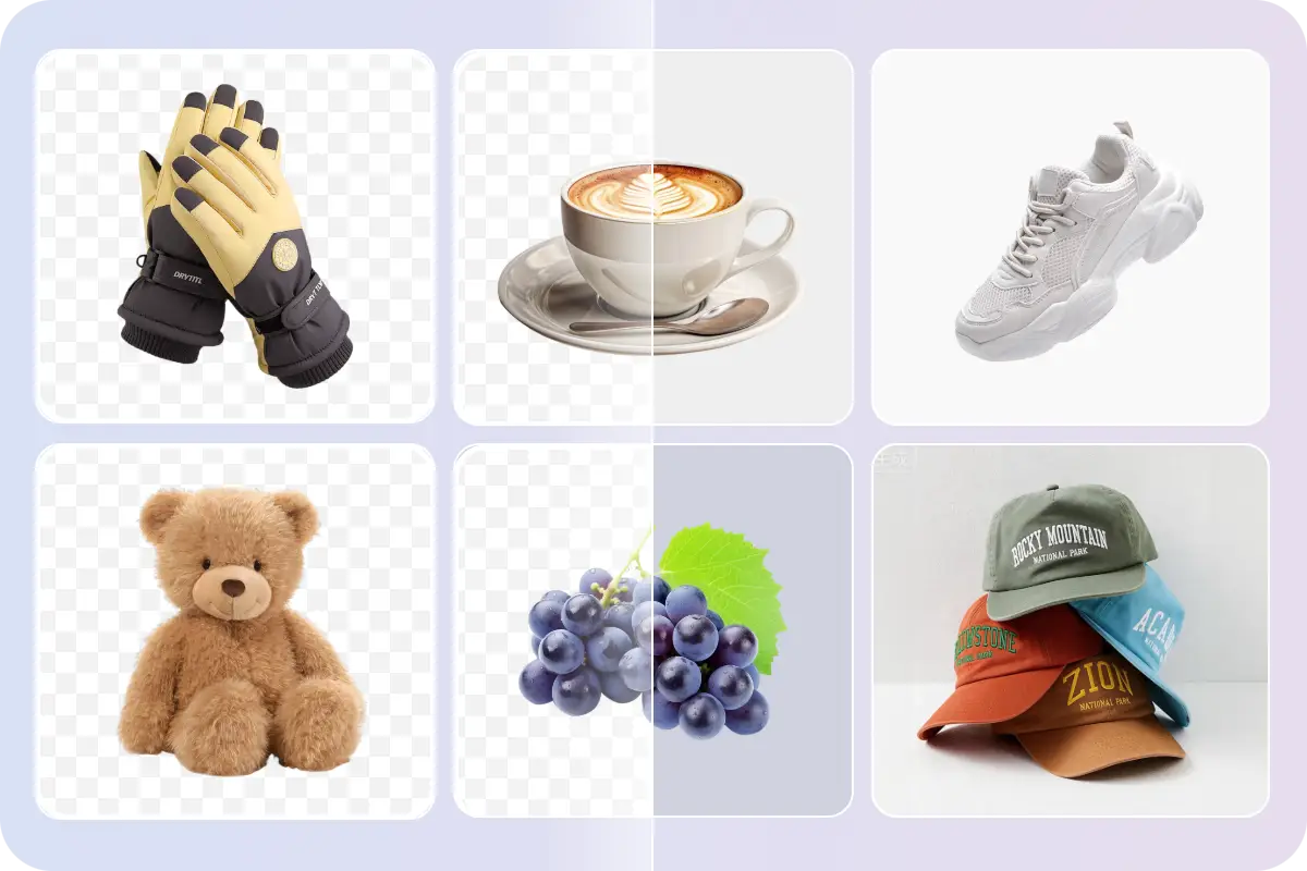 Download transparent PNGs or clean solid backgrounds optimized for ecommerce, ads, and social media.