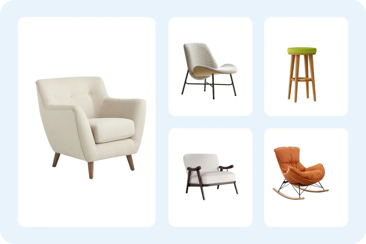 Replace plain or removed backgrounds with clean studio scenes or lifestyle environments that match your brand.