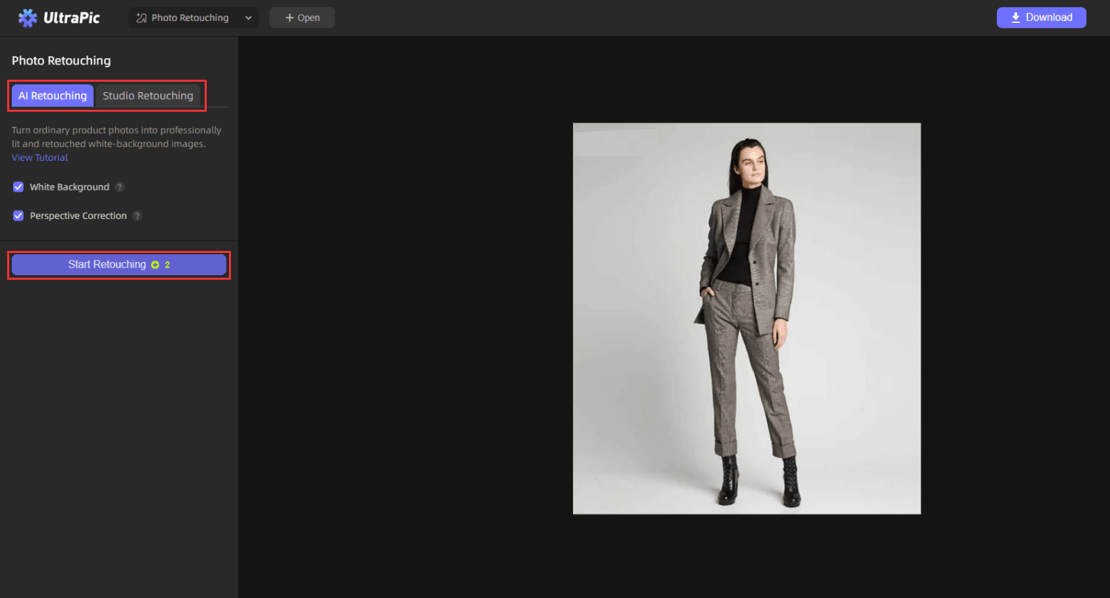 Step 3. When it completes, click Download to save the retouched photo. (PNG for transparency; JPEG for web/catalog).
