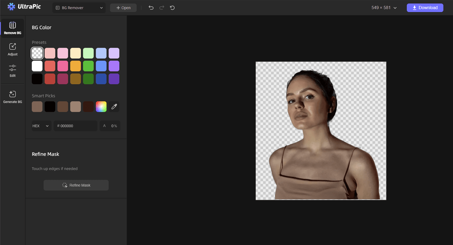 Step 3. Now, you can set another background color or go to Generate BG to replace it with a new background easily. Then, click Download to get the pictures without a shadow on the back.