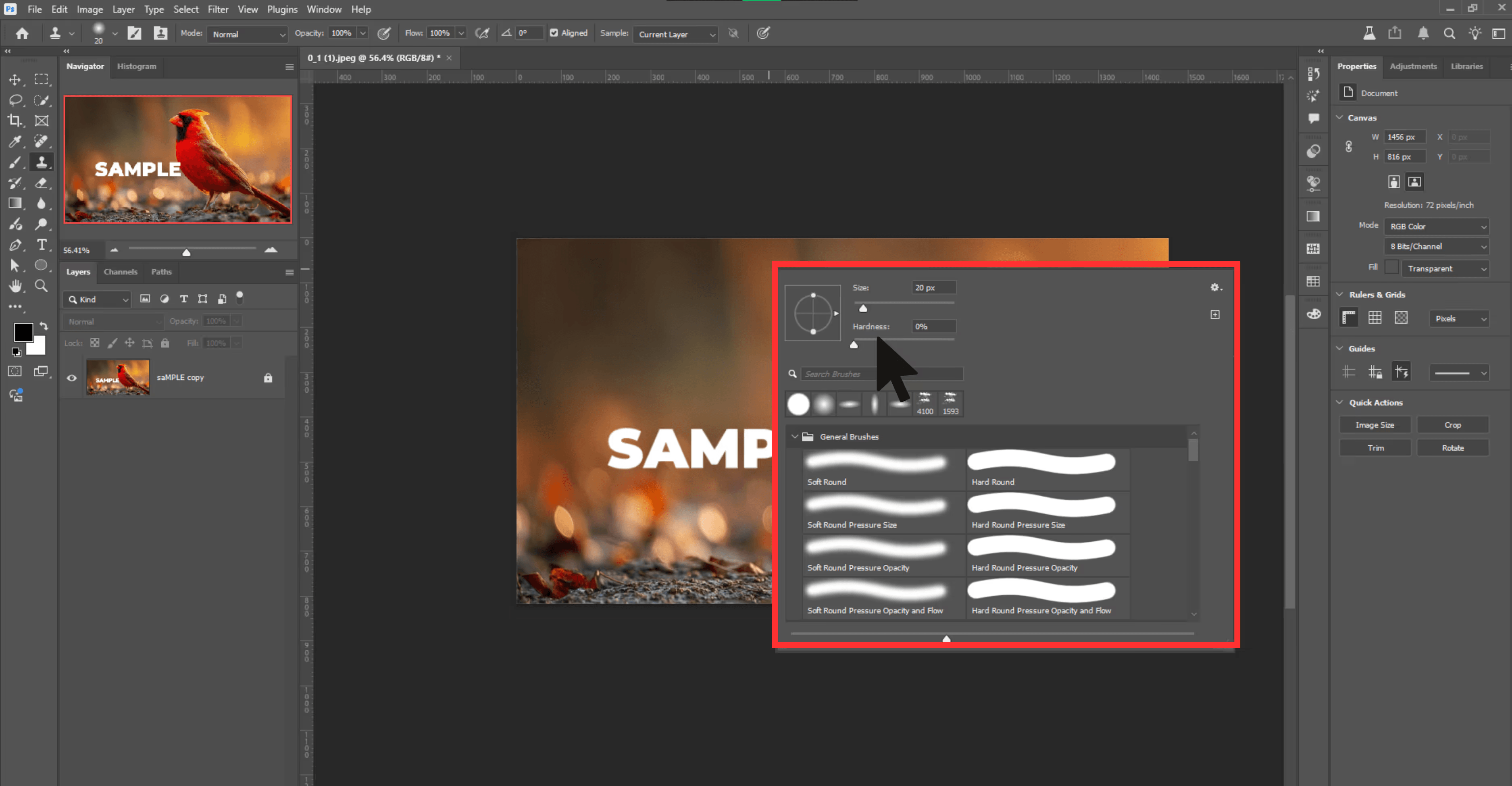 Step 1. Start by selecting the Clone Stamp Tool from the toolbar on the left side. Then, adjust the brush size and hardness in the options bar.
