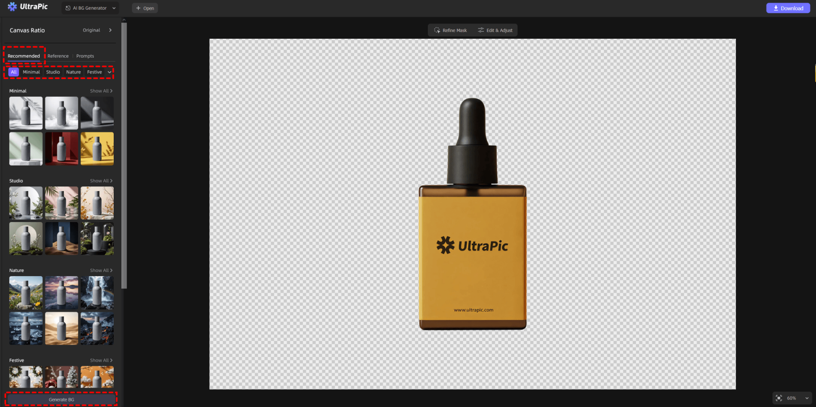 Step 3. To change background for Shopify product images, you can click Generate BG on the left - there are 3 options ways available: